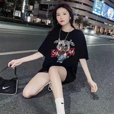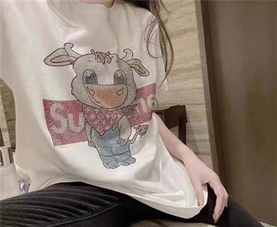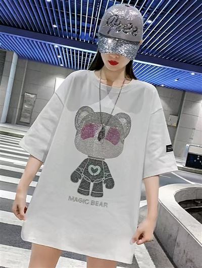 女士燙鉆大版T恤。10000件。 均碼。獨立包裝。 質量超好。 200件起批13.8元。 清貨12.8元。 要好貨的來