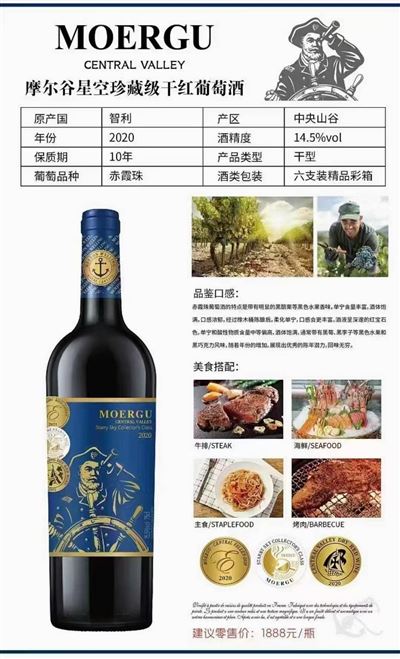 摩爾谷星空紅酒,躺箱,?22年9月,14.5度,中央山谷產(chǎn)區(qū),一箱6瓶,資質齊全,有個幾百箱,50箱起訂,98元一箱